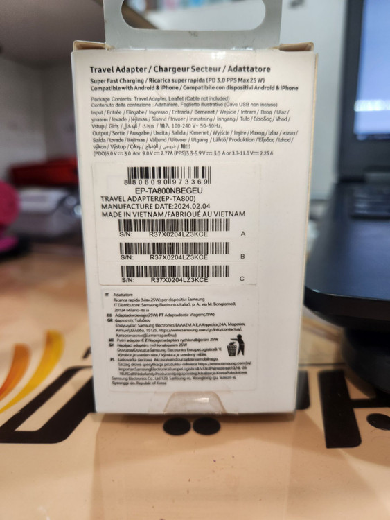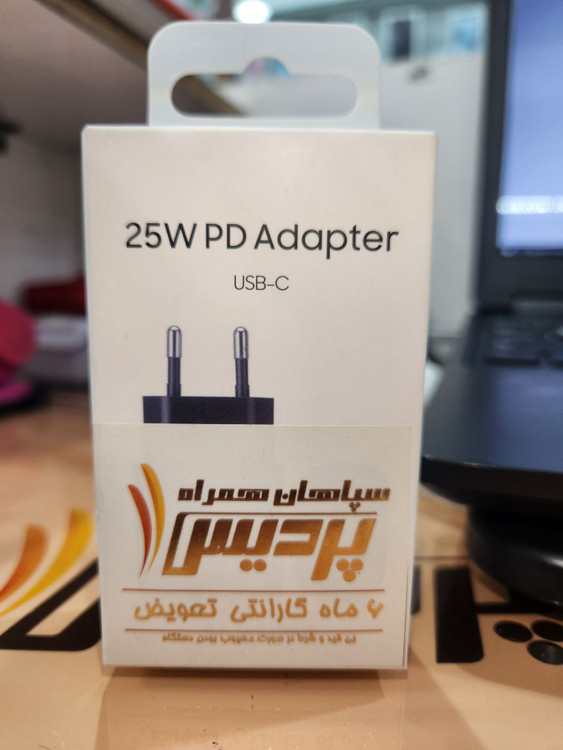 شارژر دیواری 25 وات سامسونگ مدل EP-T2510 با اتصال به پریز دوشاخه (استاندارد ایران) و تکنولوژی شارژ سریع USB PD 3.0، دارای یک عدد درگاه خروجی USB Type-C